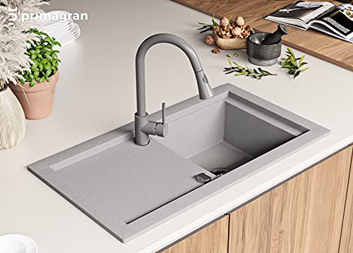 Primagran MP-NZ68 Lavello in Granito, 2. Grigio + Superficie Antibatterica, 4. Siphon +Armatur 9000