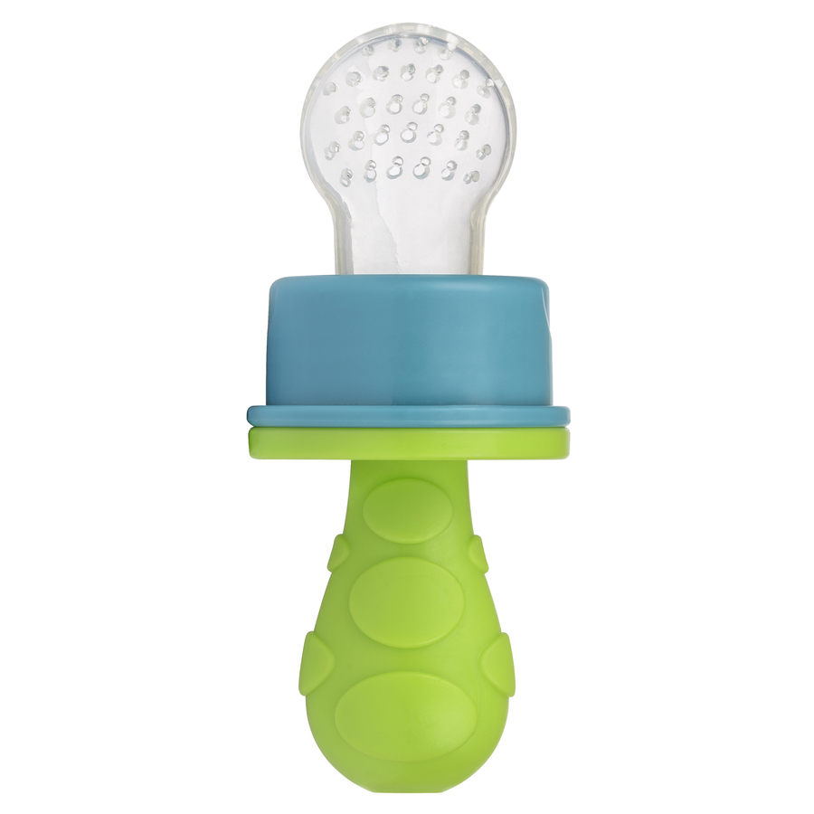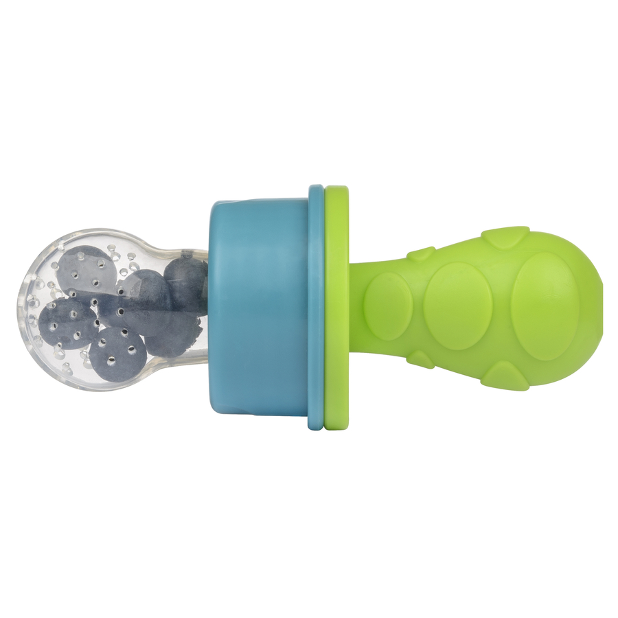 Con il succhietto di primamma, i piccoli possono provare a gustare frutta fresca e verdura morbida senza il rischio di inghiottirla. Così il tuo bambino inizierà a sentire il sapore di banana, melone, carota, cetriolo e tanto altro ancora: basta riempire il morbido silicone e avvitarlo sul manico con anello. Anche i più piccoli potranno variare cibo e sapori. E più assaggiano da piccoli, meno complicati saranno con il mangiare da grandi. Pratico: L'impugnatura è adattata alle piccole mani. La parte in silicone igienico è facile, veloce e semplice da pulire. Il coperchio chiude il succhietto frutta durante il trasporto. Senza BPA. Dettagli del prodotto: Confezione: 1 pezzo Materiale: PP, silicone Età: A partire da 8 mesi