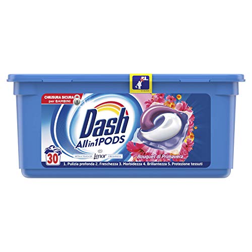 Dash 30 Pods 3in1 Primavera Detersivo Lavatrice in Monodosi, Formato da 30 Capsule