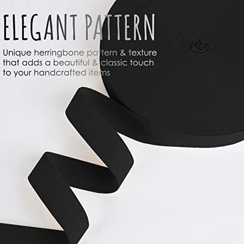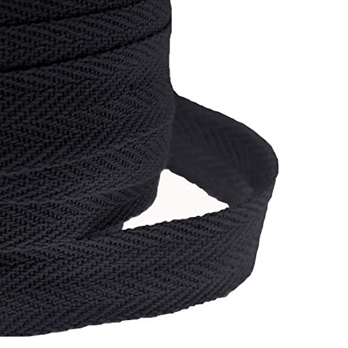 JJ PRIME - Nastro in cotone con motivo a spina di pesce, 25 mm, 10 m, colore: Nero
