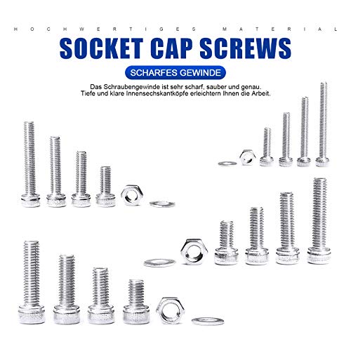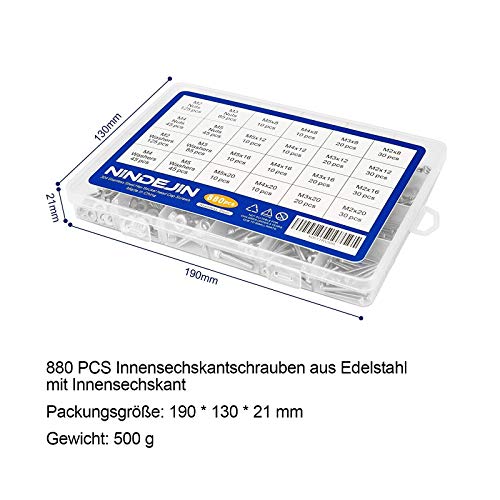 Prime Day NINDEJIN 880pcs M2 M3 M4 sei viti dadi e rondelle assortimento Kit Il Bottone testa in acciaio inox con scatola portaoggetti piatta Fall + vite Chiave