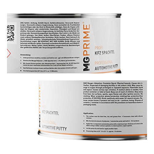 MG PRIME 1 kg Stucco per autovetture Stucco in Poliestere Stucco di riempimento Stucco fine e indurente 2K