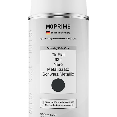 MG PRIME Vernice per auto Kit di bombolette a spruzzo per Fiat 632 Nero Metallizzato/Schwarz Metallic Bomboletta spray da 400ml di vernice di base vernice trasparente