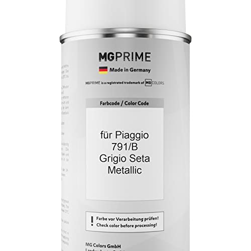 MG PRIME Vernice per auto Kit di bombolette a spruzzo per Piaggio 791/B Grigio Seta Metallic Bomboletta spray da 400ml di vernice di base vernice trasparente