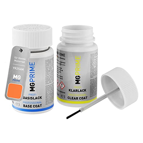 MG PRIME Vernice per moto Kit stilo di ritocco per Honda Motorrad YR254M Bombay Orange Mica Vernice di base vernice trasparente ognuno 50ml