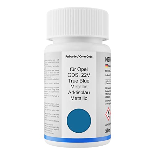 MG PRIME Vernice per auto Kit stilo di ritocco per Opel GDS / 22V True Blue Metallic/Arktisblau Metallic Vernice di base vernice trasparente ognuno 50ml
