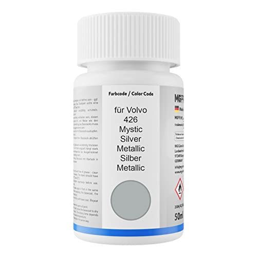 MG PRIME Vernice per auto Kit stilo di ritocco per Volvo 426 Mystic Silver Metallic/Silber Metallic Vernice di base vernice trasparente ognuno 50ml
