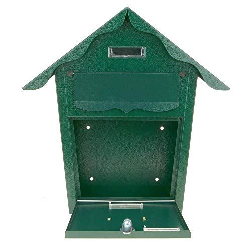PrimeMatik - Cassetta delle lettere casella postale e posta metallico di colore verde da parete 366 x 100 x 370 m