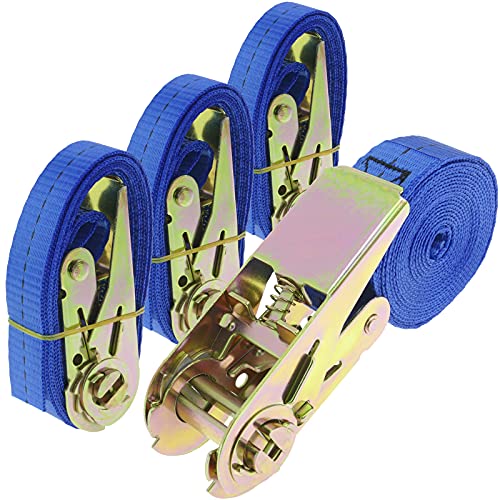 PrimeMatik - Confezione di 4 Cinghie di Fissaggio con cricchetto 4m x 25mm 800Kg, Colore Blu