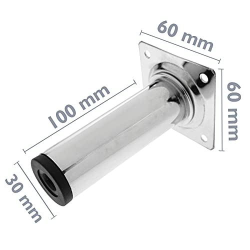 PrimeMatik - Gambe Tondo. Piedini da Tavolo per mobili e scrivania in Acciaio Cromo 10cm 4-Pack