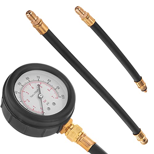 Manometro analogico che misura la compressione del motore per veicoli a benzina su doppia scala (psi, bar), permettendo di individuare una corretta compressione nelle fasce elastiche, negli alesaggi dei cilindri, nella guarnizione della testata o nelle valvole.