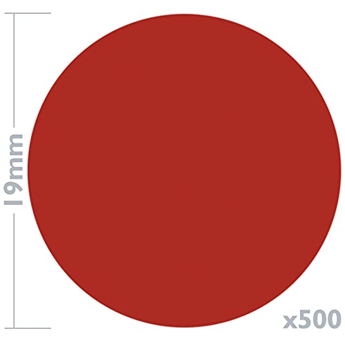 PrimeMatik - Rotolo da 500 Etichette adesive Rotonde Rosse 19 mm