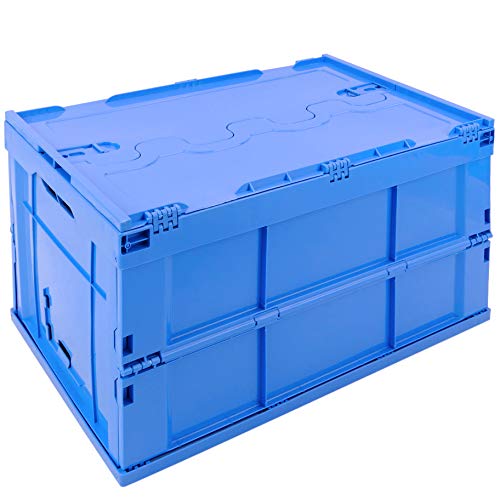 PrimeMatik - Scatola plastica EuroBox Pieghevole e impilabile. Contenitore in Blu con Coperchio 60x40x32cm 5-Pack