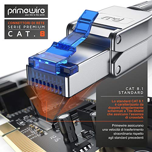 Primewire - 2X connettori RJ45 a crimpare Cat 8 - Connessione Senza Attrezzi - 40 GBit/s 2000 MHz Ethernet - Connettore a crimpare in Metallo - Retrocompatibile Cat 6 Cat 7