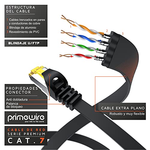 Adatto per le reti domestiche, PC, notebook, laptop, switch, modem, router, pannelli di permutazione, Powerlan, Disposotivos NAS, console di gioco, ricevitori Hi-Fi, Media Player, Internet Radio, telecamere di rete, stampanti di rete e molto Inoltre, all'interno di un 10BASE-T 10/100/1000/10000 Mbit | Soddisfare dell'imballaggio: cavo PrimeWire Cat.7 Gigabit Ethernet con connettore RJ 45