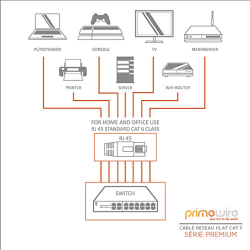 primewire - 7,5 m (metri) piatto Cat.7 cavo Ethernet | cavo patch | 2 x connettori RJ-45 maschio | spina con manicotto antipiega | colore: nero