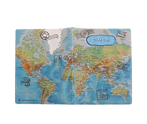 PriMI - Custodia per passaporto, in pelle PU, con mappa del mondo, colore: Blu