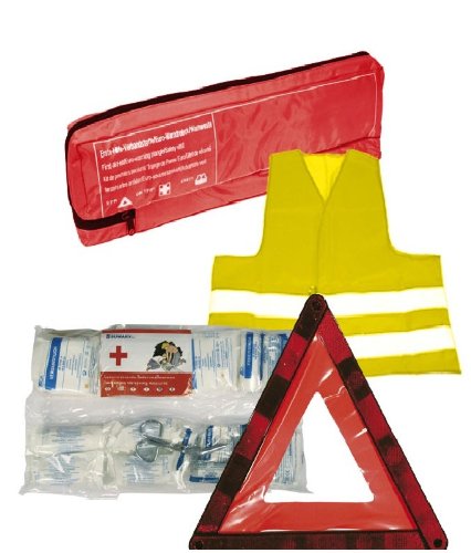 Set di primo soccorso 3 in 1 per auto, Trio, borsa pronto soccorso + gilet di sicurezza + triangolo conforme nuova DIN 13164-2014