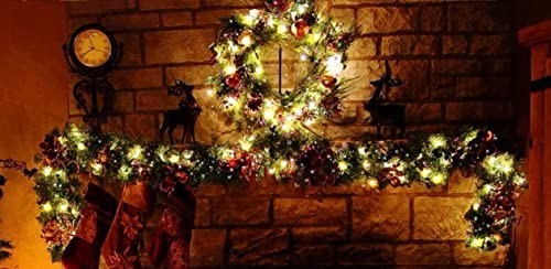 PrimoLiving Ghirlanda di abete artificiale con illuminazione a LED, ghirlanda di luci natalizie, verde, 270 cm, con luce bianca calda, per Avvento e Natale
