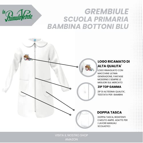 La Primula Verde Grembiule Scuola Elementare Infanzia da Bambina Siggi, Bianco, Zip, Con e Senza Logo, dai 6 ai 15 anni. Calza Omaggio. Consigliato per Materna, Elementari, Medie (12 anni, si logo)