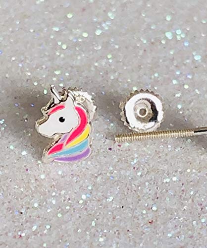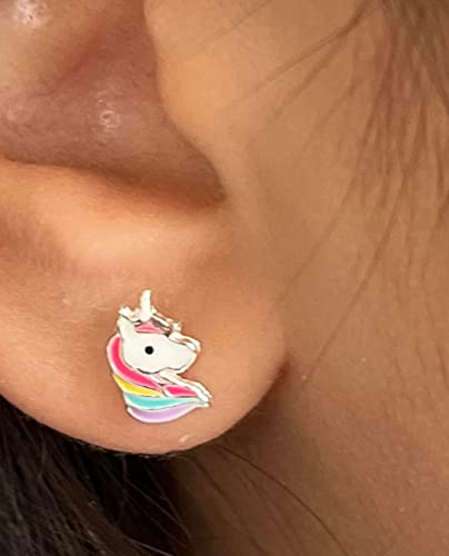 La Rosa Princesa - Orecchini a bottone da unicorno per bambini in argento sterling 925 con chiusura a vite posteriore