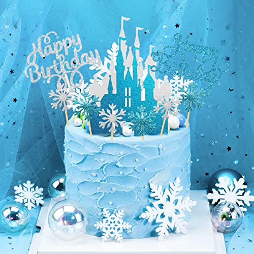 ❄️Set di 26 decorazioni per torte con fiocchi di neve, include 1 topper per torta blu ghiaccio, 1 topper per torta bianca argento, 10 coperchi per torta a fiocco di neve bianco argento, 10 coperchi per torta a fiocco di neve blu, 2 topper per palloncini, 1 topper per Happy Birthday in blu, 1 topper per Happy Birthday in colore bianco argento.