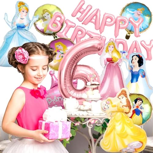 Principesse Palloncino,9 Pezzi Palloncini Foil Princess+Numero 6 Palloncini Principesse+Palloncino Banner Compleanno,Principesse Palloncino Foil Forniture per Bambini Feste di Compleanno