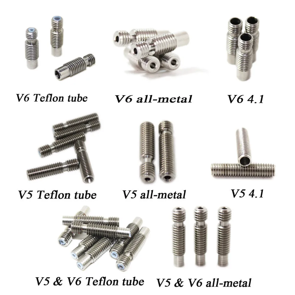 8 Type! 5pcs 3D Printer Nozzle throat with Teflonto tube or All metal 4.1mm Through-hole for 1.75 or 3.0mm 3D V5 & 3D V6 J-Head