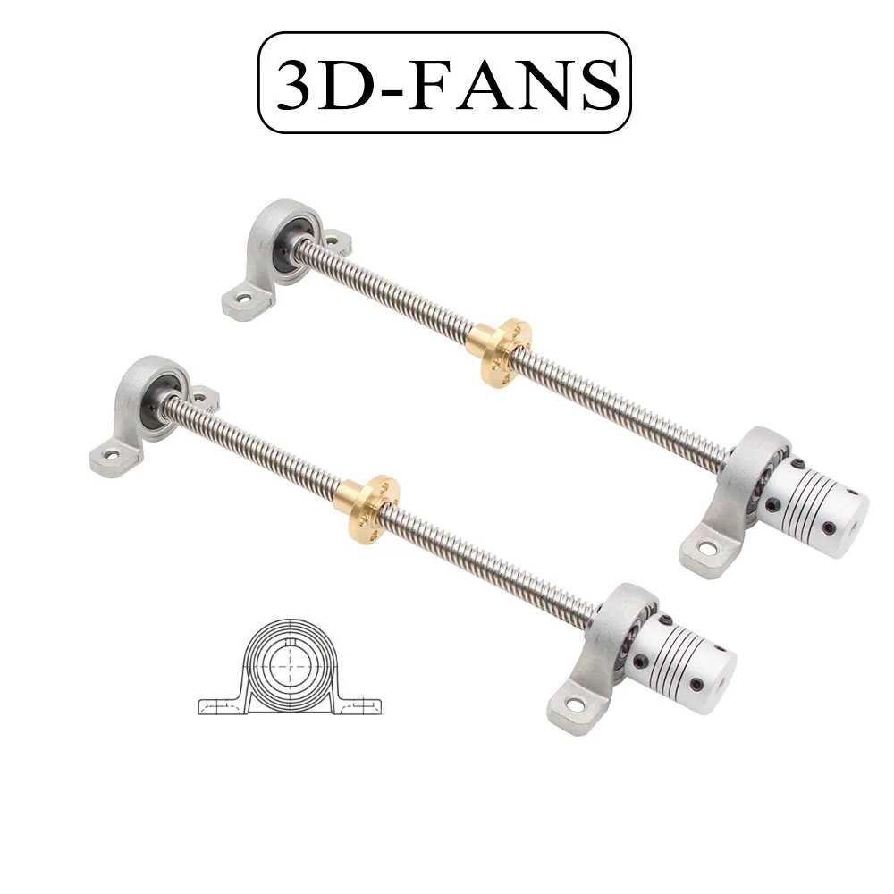 1Set 100/200/250/300/350/400/500mm 3D Printer &CNC T8 Lead Screw 8mm + Brass Copper Nut +KP08 Bearing Bracket +Flexible Coupling