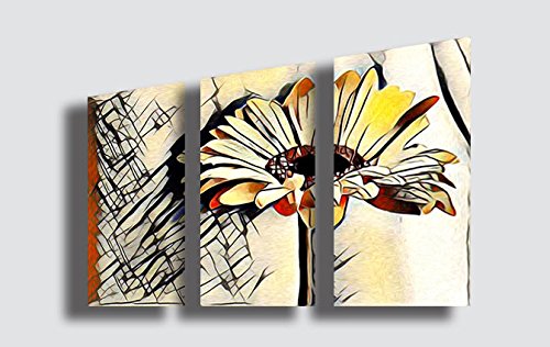 Printerland.it Quadro Moderno FIORI Etnico GIRASOLE Astratto Abstract Fiore Cucina Soggiorno Camera da letto Quadri Moderni Stampa su Tela Canvas (70x90 cm(3pz 30x70))