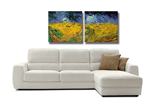 Printerland.it Quadro VINCENT VAN GOGH Campo di grano con corvi - RIPRODUZIONE STAMPA SU TELA Quadri Moderni Moderno Astratto Arte Cucina Soggiorno Camera da letto 50x100 cm (2pz 50x50 cm)