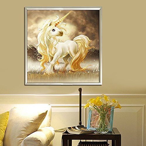 Printing DIY Diamond Painting Flower Full Area Square Resin Stick Paste Home Decor Wall Decorative Painting(Unicorn) (30x30cm/11.81*11.81inch)