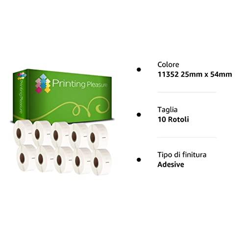 Printing Pleasure 10 x 11352 Rotoli Etichette adesive compatibile per Dymo LabelWriter & Seiko Stampante per Etichette | 25mm x 54mm | 500 Etichetta per Rotolo