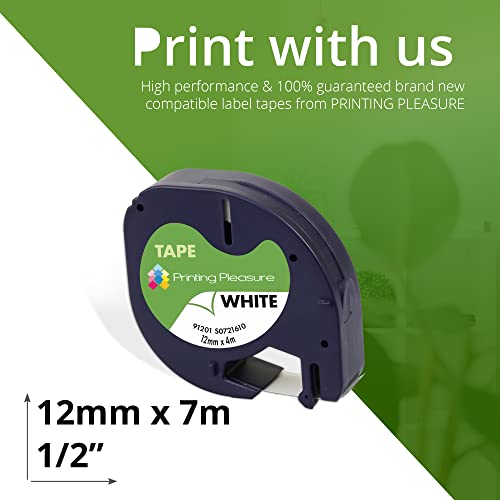 Printing Pleasure 2x Compatibile 91201 Nero su Bianco (12mm x 4m) Plastica Cassetta Nastro per Dymo LetraTag LT-100H, LT-100T, LT-110T, QX 50, XR, XM, 2000, Plus Etichettatrici