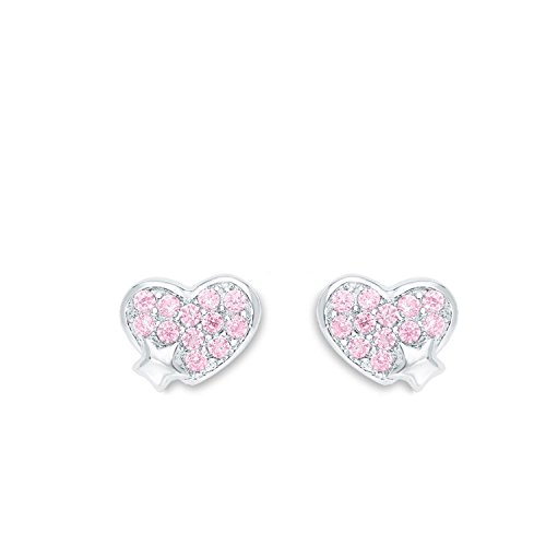 Prinzessin Lillifee 541893-Orecchini a lobo per bambini, a forma di cuore, 6 mm, in argento 925 placcato al rodio, con Zirconia cubica rosa, taglio rotondo