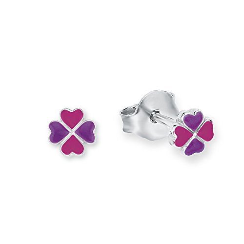 Prinzessin Lillifee 566575 Orecchini da bambina a forma di quadrifoglio, in argento rodiato e smaltato 925