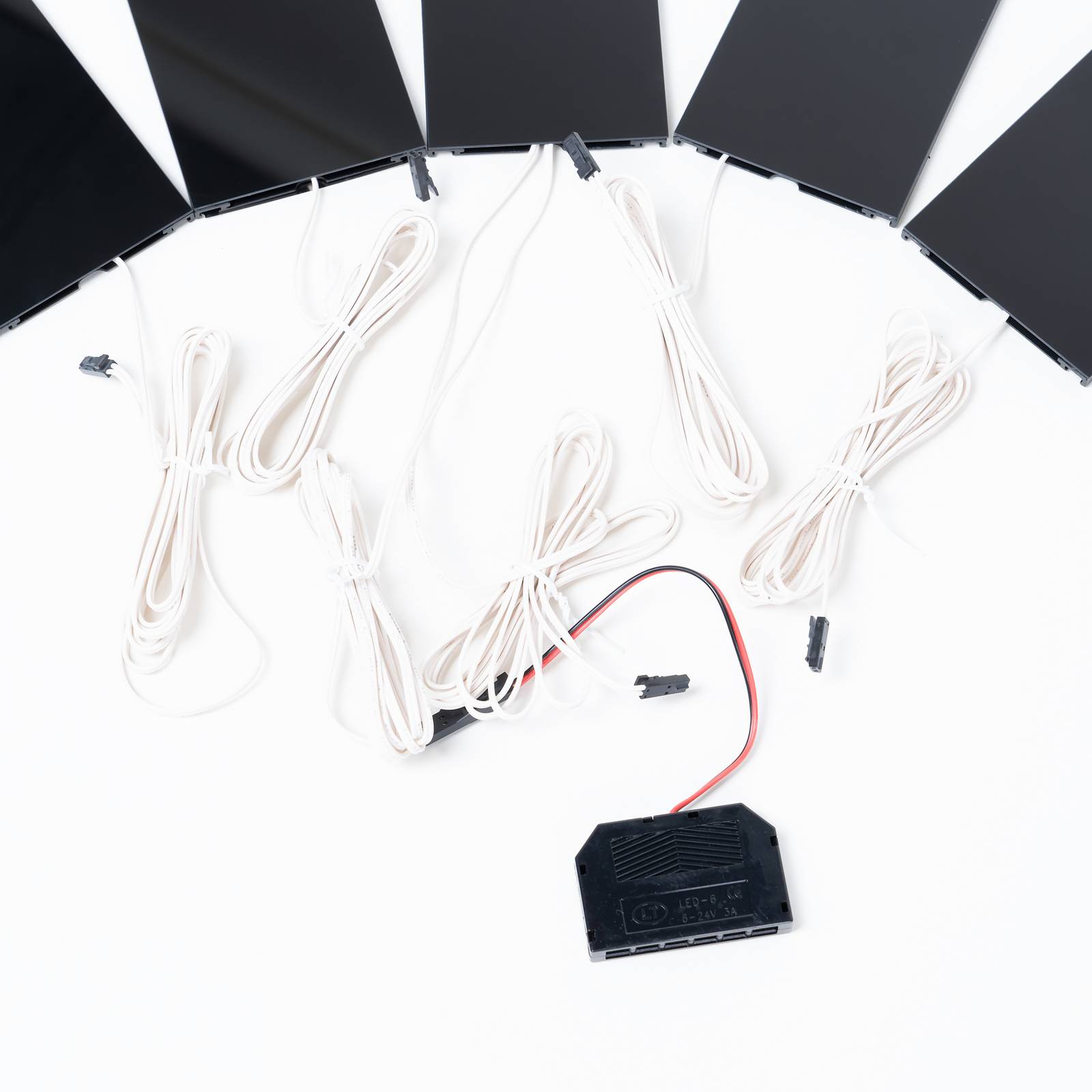 Moderno set di 5 luci sottopensile a LED: le luci sottopensile Rixa nereEcco cinque luci sottopensile a LED di grande effetto e dall'aspetto moderno, fornite in un pratico set. Possono essere montati uno accanto all'altro sotto un pensile in cucina o in uno studio e sono tutti in nero lucido, per un look sofisticato. Con una buona luminosità e un basso consumo, sono particolarmente economici ed efficienti e possono illuminare brillantemente la superficie di lavoro. Uno degli apparecchi funge da apparecchio principale ed è dotato di un interruttore integrato con cui è possibile accendere e spegnere tutti gli apparecchi. Questo apparecchio dispone anche del distributore multiplo con cui sono collegati tutti gli altri apparecchi. L'apparecchio è collegato tramite una spina euro, per cui non è necessario un cablaggio complicato, ma è sufficiente un colpo di mano per l'installazione.