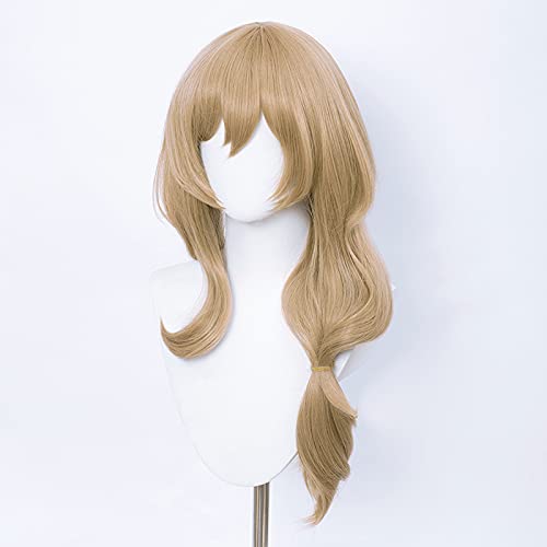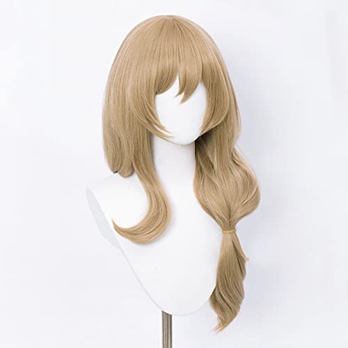 PRIOUTZ - Parrucca castana lunga e ondulata, per cosplay di Lisa di Genshin Impact, parrucca con frangetta per feste a tema anime