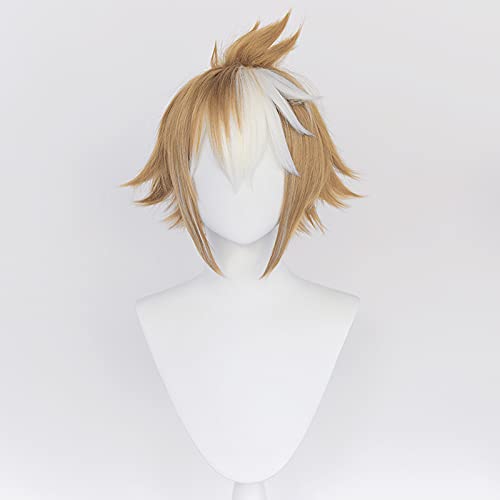 PRIOUTZ Parrucca corta per capelli castani per Genshin Gorou Cosplay da uomo Anime Party con orecchie Bangs