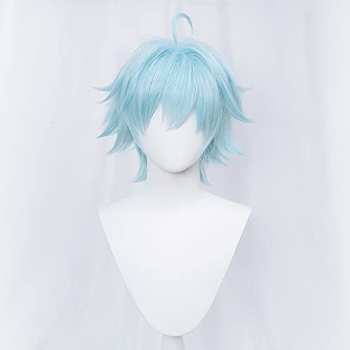 PRIOUTZ - Parrucca corta blu, per cosplay di Chongyun di Genshin Impact, parrucca con frangia e ciocca ahoge per feste a tema anime