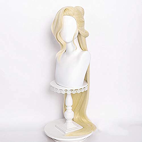 PRIOUTZ - Parrucca lunga bionda, per cosplay di La Signora di Genshin Impact, parrucca con chignon per feste a tema anime