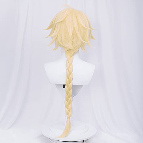 PRIOUTZ - Parrucca lunga bionda con treccia, per cosplay di Aether di Genshin Impact, parrucca con frangia per feste a tema anime
