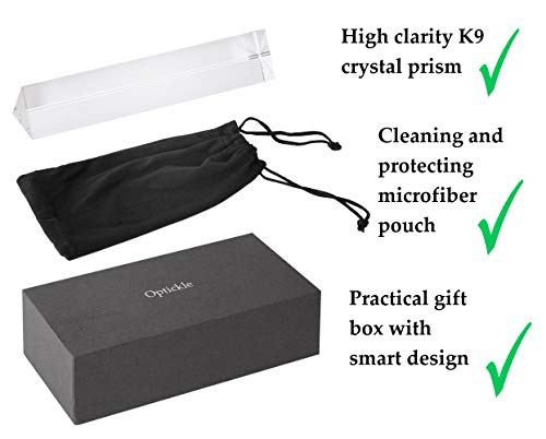 Prisma fotografico di alta qualità. Se sei alla ricerca di un prisma di vetro di alta qualità da fotografia, il prisma ottico di Optickle è la scelta migliore. Il nostro prisma triangolare è realizzato in vetro ottico spesso e di alta qualità e dà vita a meravigliosi arcobaleni luminosi grazie al fenomeno della divisione del fascio di luce nelle sue diverse componenti. Lungo 15,2 cm e leggero, facile da tenere in mano e da portare con sé.