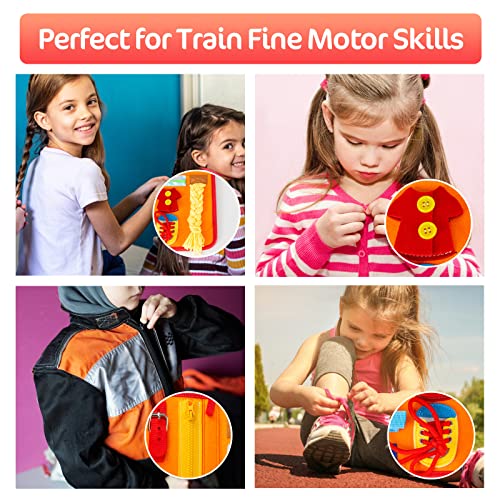 【17-in-1 Busy Board Montessori】Questo giochi educativi montessori contiene 17 pezzi: fibbie, cerniere, cinturini, lacci delle scarpe, bottoni, trecce, ecc., Possono allenare la vestizione dei bambini e l'abilità pratica. La tavola da lavoro montessori può insegnare a tuo figlio come tenere una cerniera, abbottonarsi i vestiti, allacciarsi le scarpe, allacciare la cintura, intrecciare i capelli e altre attività di apprendimento.