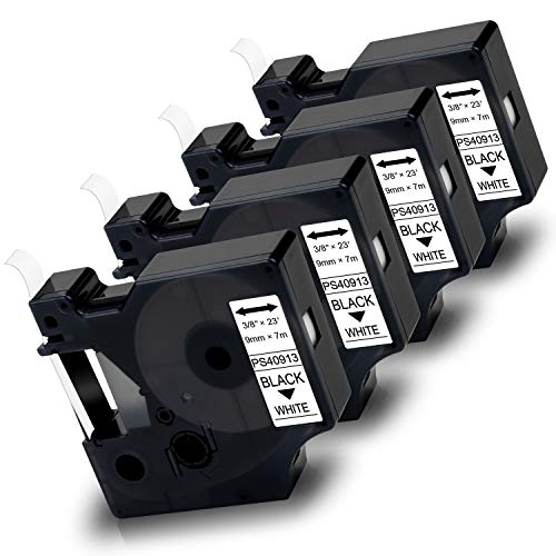 Dimensioni e colore: 9mm (3/8 ") larghezza x 7m (23') lunghezza, nero su bianco, 4 pacchi compatibile per Dymo 40913 S0720680 nastro (nastro per etichette non OEM).