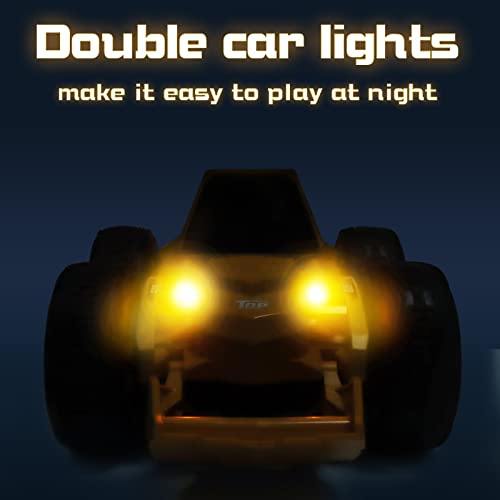 Forma unica del Bulldozer: l'auto giocattolo del bulldozer può far scorrere il secchio su e giù, capovolgimenti di 360° e rotazione verticale di 180° lo rendono più fresco e più giocabile rispetto ad altre macchinine. Premere brevemente AUTO DEMO per avviare la modalità di dimostrazione automatica. Il veicolo telecomandato esegue automaticamente tutti i tipi di fantastiche funzioni fresco.