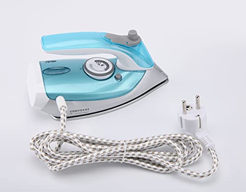 Pritech - Ferro da stiro a vapore da viaggio, con manico pieghevole, 1000 W, doppia tensione 110/230 V, design mini, leggero, blu, bianco e grigio