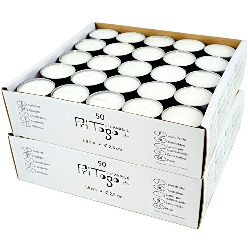 Pritogo - Candeline da tè bianco [100 pezzi] Ø 3,8 x 2,5 cm, senza fuliggine, durata 8 ore