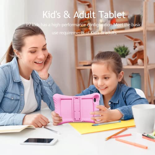 PRITOM Kids Tablet 32GB ROM, espandere a 128 GB, Tavoletta per bambini, Processore Quad Core, Display HD IPS, Tablet Android 10 WiFi da 7 pollici, Bluetooth, Doppia Fotocamera, Tablet for kids(Rosa)