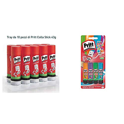Pritt Colla Stick 10 x 43g, colla per bambini sicura e affidabile, per lavoretti e fai da te + Pritt colle stick Fun Colors 4 x 10g, colla colorata per applicazioni creative a casa e scuola